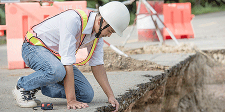 舗装切断をするのは専門業者に依頼し、当社では、その作業の合番、路面清掃、作業帯の設置・撤去などを行います。