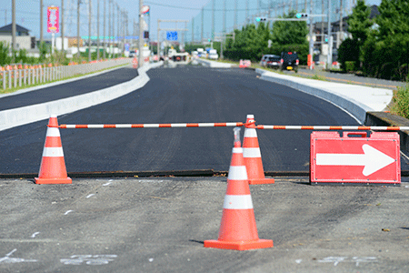 舗装工事の目的は、安全性の向上や景観の維持・改善などです。舗装されてない道を通ると転倒する可能性が高くなります。そこで舗装工事で道を平坦にして危険性を低くします。