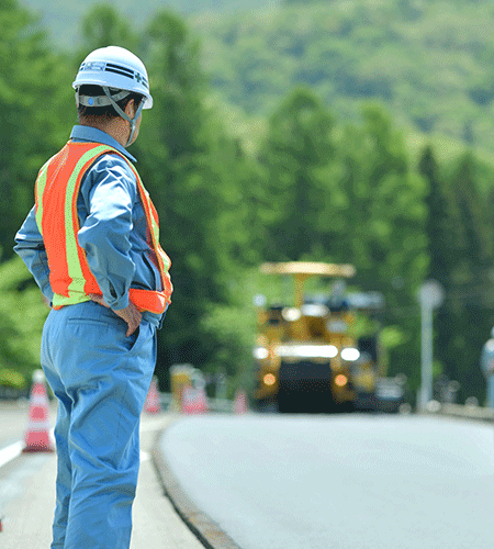 利用目的に合った材料を確かな技術で造り上げ、確実で誠実な施工を目指し研鑽を重ねております。「街と人」を結ぶ大切な道路の高品質な舗装施工をいたします。また店舗などの駐車場なども手掛けます。